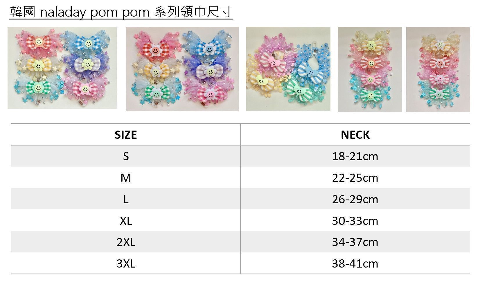 尺寸:S~3XL號 (脖圍13~41cm) (S-L請至該範圍尺寸賣場下單)
